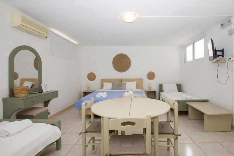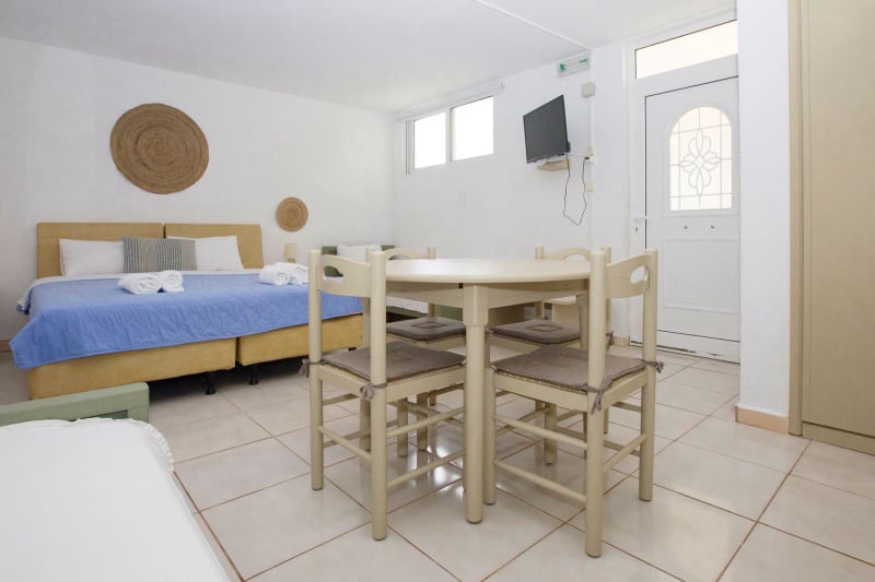 Το ημιυπόγειο Standard Δίκλινο Δωμάτιο μπορεί εύκολα να φιλοξενήσει την τετραμελή οικογένειά σας, καθώς διαθέτει ένα διπλό και δύο μονά κρεβάτια. Περάστε όμορφες στιγμές με τους αγαπημένους σας τρώγοντας ένα σπιτικό γεύμα στον κήπο, ακριβώς μπροστά από το διαμέρισμά σας.