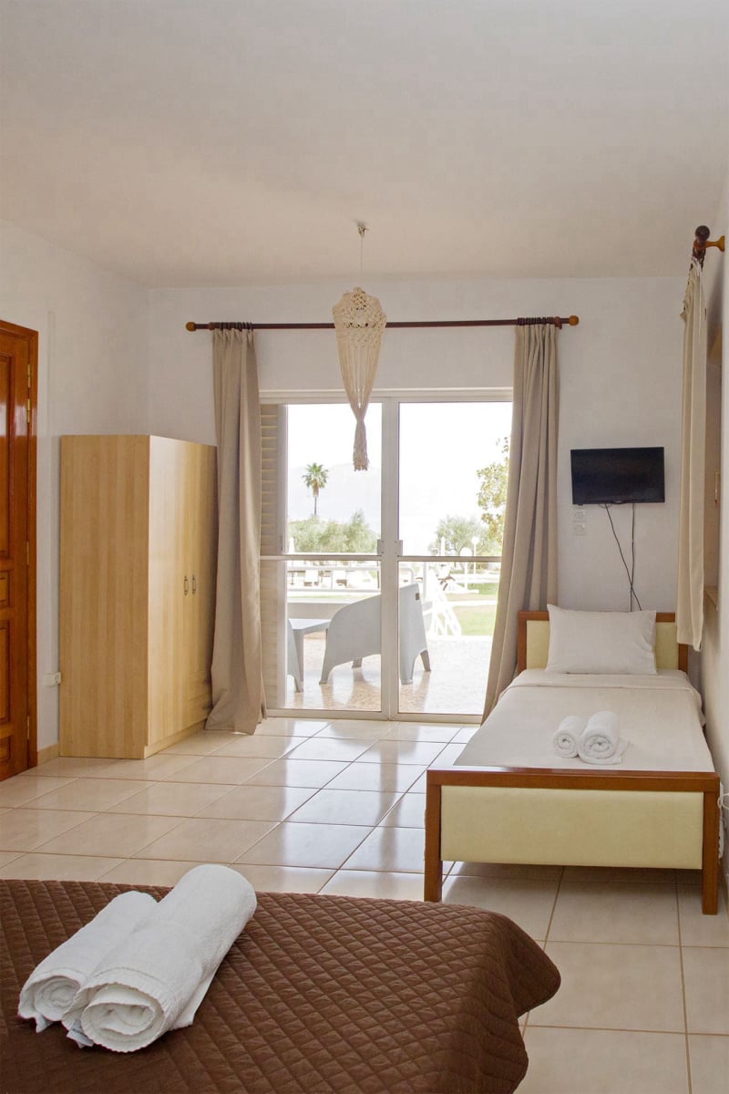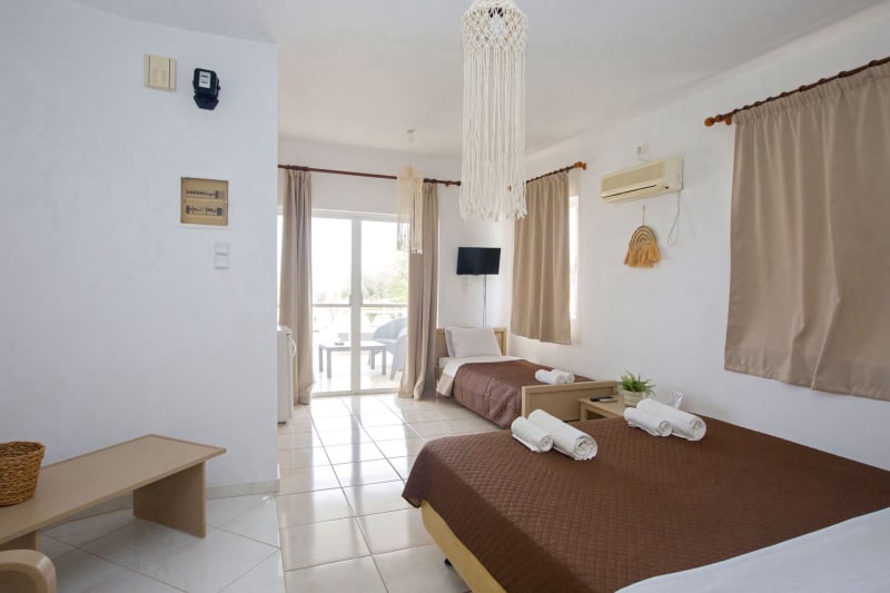 Το ισόγειο διαμέρισμα προσφέρει ευρύχωρο εσωτερικό, που μπορεί να φιλοξενήσει έως και 3 άτομα, καθώς διαθέτει ένα διπλό και ένα μονό κρεβάτι. Θαυμάστε το φυσικό τοπίο, που ξεδιπλώνεται μεγαλοπρεπώς μπροστά στα μάτια σας, από το μπαλκόνι σας μετά από μια μέρα εξερεύνησης.